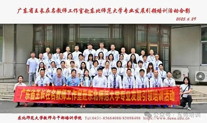 6月28日至7月3日,广东省王长在名师工作室联合中山市杨仙逸中学骨干教师团队一行在东北师范大学开展了专业发展引领培训研修活动。本次研修活动以“理论引领+实践考察+红色教育”三种方式,通过专家讲座、名校参访、教学观摩、研讨交流等多种形式,全面提升教师队伍专业素养。 开班仪式在东北师范大学教师与干部培训学院举行。东北师范大学教师与干部培训学院张守伟院长在热情洋溢的致辞中强调:“教育的本质是激发学生相信改变的力量,...