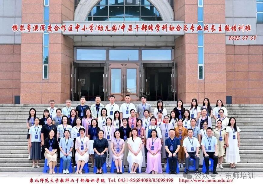 2025年7月7日至7月12日,横琴粤澳深度合作区中小学(幼儿园)中层干部跨学科融合与专业成长主题培训在东北师范大学成功举办。合作区民生事务局副局长许凤梅、教育发展处代理处长唐翠冰,东北师范大学教师与干部培训学院院长张守伟等领导出席开班典礼,来自合作区中小学(幼儿园)的49名中层干部通过"理论-实践-研学"三维培养模式,系统提升教育管理创新能力。本次培训作为合作区深化粤澳教育协同发展的重要举措,得到两地教育主管部门高度重视。...