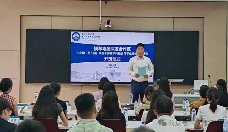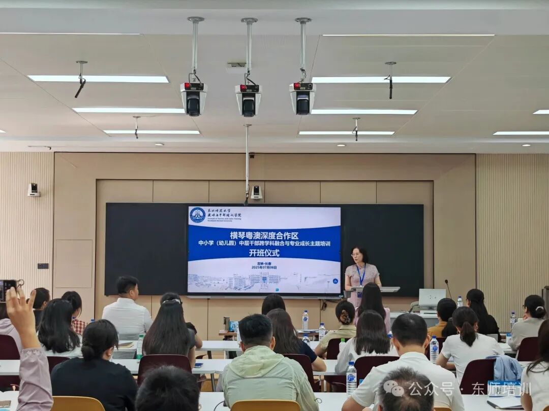 2025年7月7日至7月12日,横琴粤澳深度合作区中小学(幼儿园)中层干部跨学科融合与专业成长主题培训在东北师范大学成功举办。合作区民生事务局副局长许凤梅、教育发展处代理处长唐翠冰,东北师范大学教师与干部培训学院院长张守伟等领导出席开班典礼,来自合作区中小学(幼儿园)的49名中层干部通过"理论-实践-研学"三维培养模式,系统提升教育管理创新能力。