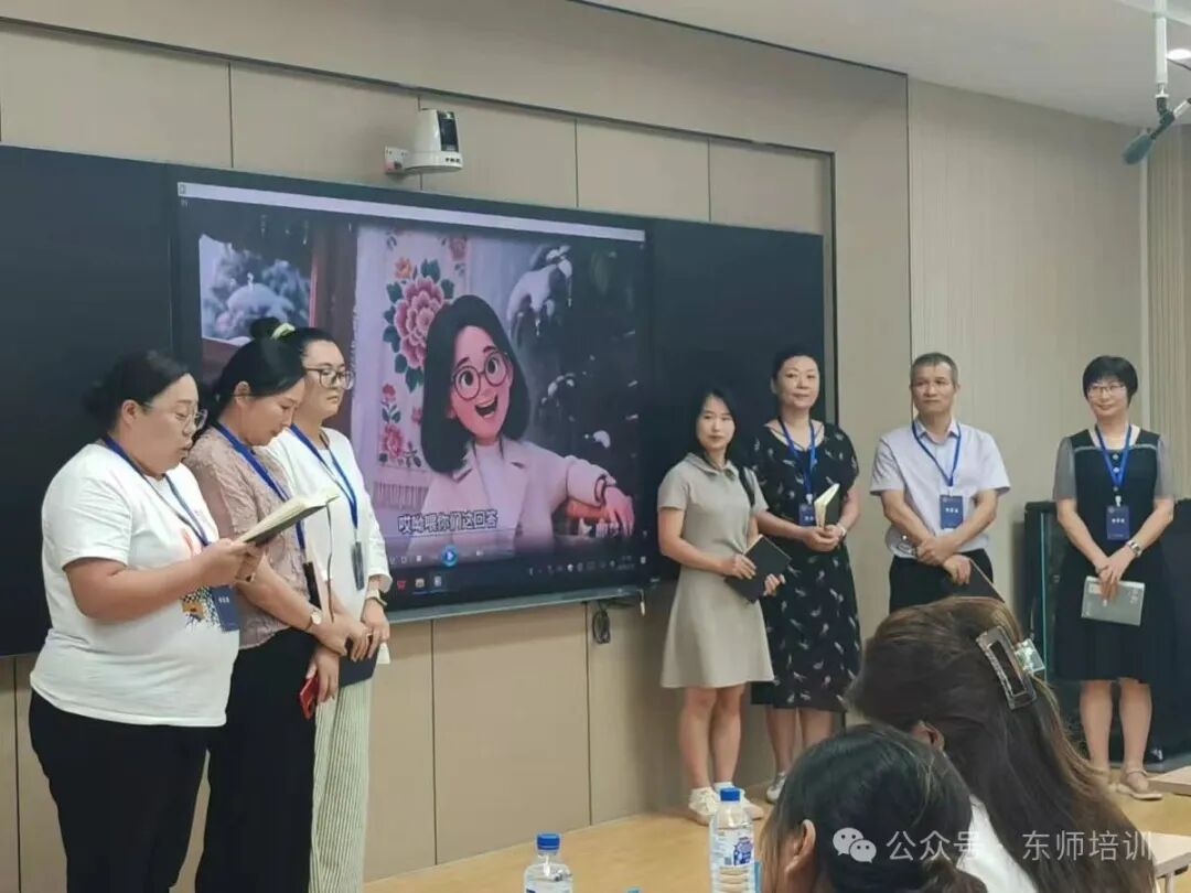 培训期间,学员以“沉浸式学习”深化理论认知:通过结构化笔记整理系统梳理知识体系,借助小组专题研讨碰撞思维火花,实现“输入-内化-输出”的闭环成长。结业仪式上,学员更以多元创新形式立体呈现跨学科学习成果——从饱含教育情怀的诗歌朗诵、诙谐生动的三句半表演,到融合技术与创意的AI数字机器人演示,不仅将现场氛围推向高潮,更以“学科融合+艺术表达+智能技术”的复合呈现方式,为东北师范大学培训成果展示树立了全新标杆。这一过程既展现了学员对“跨学科”理念的深刻理解,也印证了培训“理论赋能实践、创新驱动成长”的核心价值,成为本次校地协同育人模式中最具感染力的生动注脚。